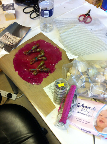 Hi there. Thanks for sharing your creative space with us nosey parkers today. It's always inspiring to see. Hope you have plenty of creative fun this coming week. Those dipped things on your desk look truly fascinating, they defy description!