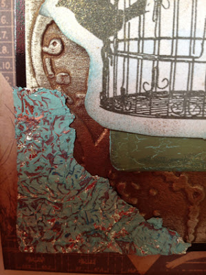 Next Grunge Paste was added through another stencil in 2 places. Once dry more paint was added, and I stencilled through some sequin waste with Claret and Beach Hut. Lastly AquamarineTreasure Gold was added on top of the Grunge Paste and around the edges of the Icon