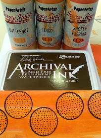 For the tops of the coneflowers, I created an orange scraped paint paper with butternut, tango and smoked paprika, using potting soil archival ink and the circles from EEV09.