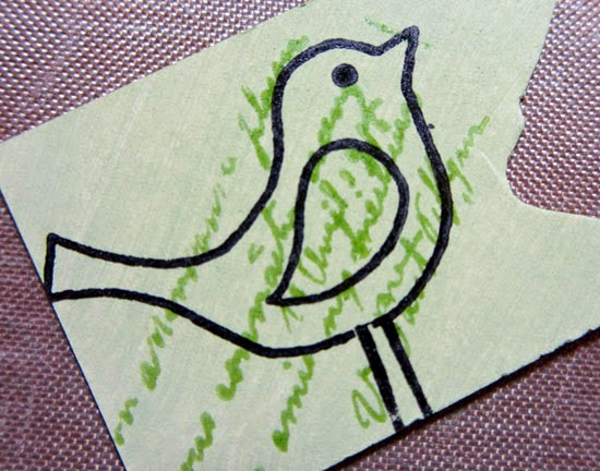 I stamped over it with the script image using Archival Leaf Green Ink, and cut the wing out.