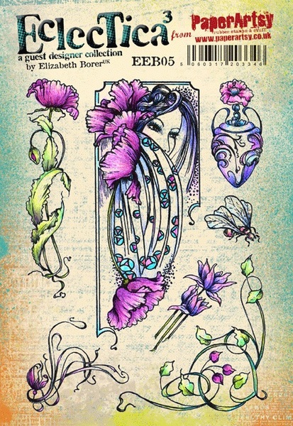 So I chose stamp set EEB05 as my main source of images, some small flowers and corner image from EEB08, the words from EEB05 and the flower spray and bee from EEB04.