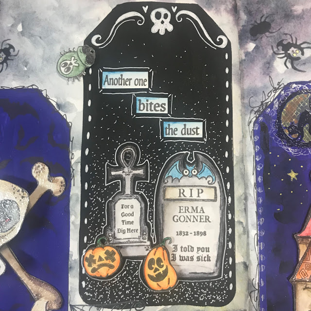 on the first page & then the pumpkins, gravestone, cat and haunted