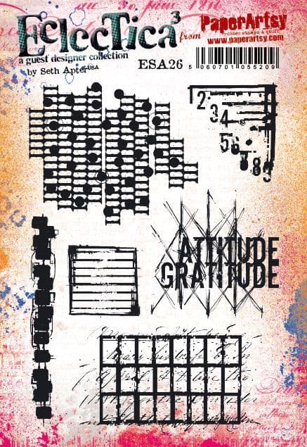 Whenever I took a look at Seth Apter stamps, I always thought how amazing they were for making really interesting backgrounds. But hey, why only backgrounds?! This time I will use these stamps as key elements, points of interest, exciting textures and building blocks of my quirky architectural design.