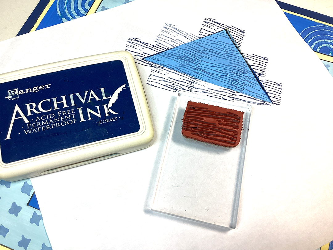 Next, EEV02 was masked and stamped on this area with Ranger Industries - Archival Ink (Cobalt).