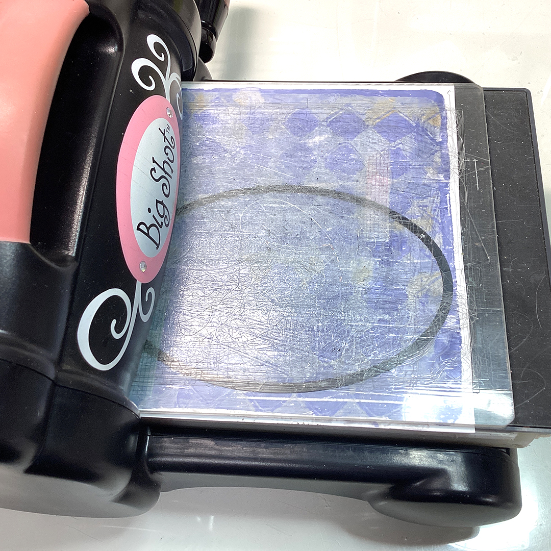 First Purple Rain and Caramel were spread on my gel plate then PaperArtsy Stencil by Sara Naumann (PS092) was applied with Snowflake to the reverse-stenciling technique Sara introduced and I lifted a print it on a A4 paper.