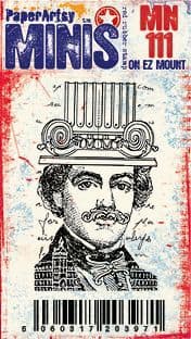 I used this process to decorate every layer. The second (card 3, a little bit bigger) gets the beautiful man from PaperArtsy: Ink & The Dog (Mini Stamp) Mini 111. The two faces will be the focal points of the card. Look at the amazing details in the stamps! Love them!