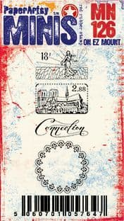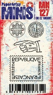 For more details, on all the layers I also added some of the new postage and mail art mini stamps. So beautiful!! I just stamped them as is...but there are so many more possible combinations and ideas for these new stamps, see them HERE! I used PaperArtsy: Ink & The Dog 9 (Mini Stamps) Mini 125, Mini 126 and Mini 127.