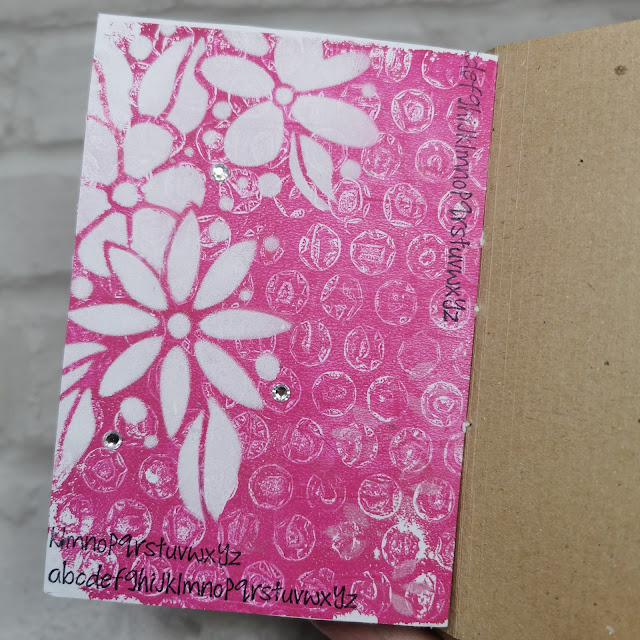 I imagined these stamps being used in small sized journals so I decided that's how I would make several of my samples - in a 8 x 12cm handmade mini journal created with gel-printed and repurposed papers ... lots of bits of this and that - you'll see pages from the journal throughout this post. But don't worry if journaling is not your 'thing' the designs are easily transferable to cards.