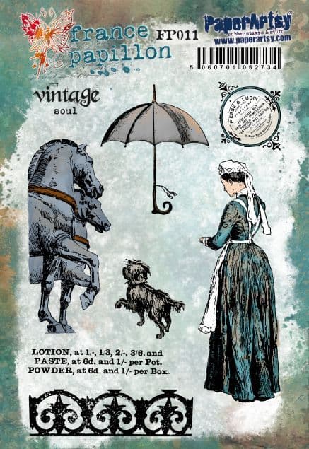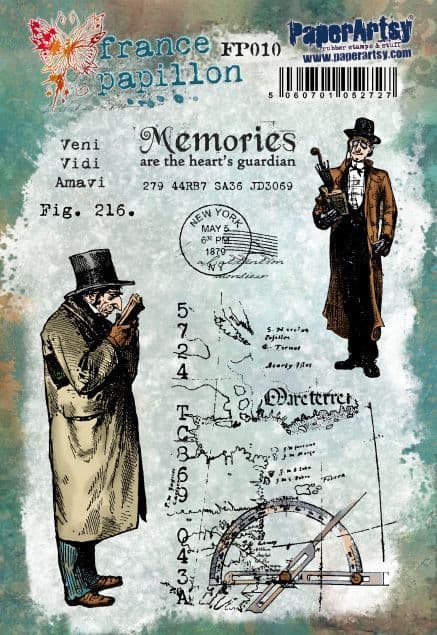 Another starting point for me was these wonderful PaperArtsy France Papillon stamp sets FP010 and FP011. Oh how I love them! That very vintage style and the backgrounds and texts... just perfect! That's where I ran into a problem... the stamps were to big for my small mouse traps I normally use... so after a long search I found the big rat traps (7,5 x 17,5 cm), yessss! So my intended idea could proceed!