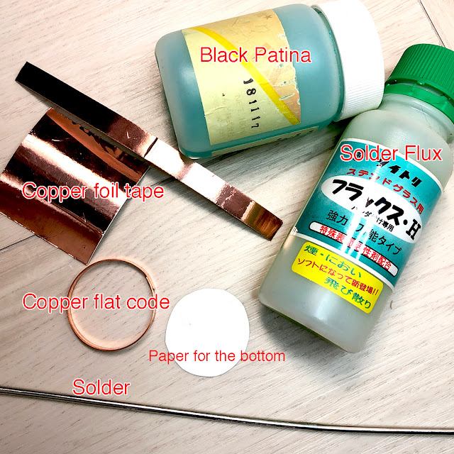 Here is a brief description of my bezel and how I used the resin. First I using an appropriate cylindrical rod, I bent the copper cord into an oval shape and made it the size of each face. (I used a rolling pin to bend). Cover them tightly with adhesive copper foil tape on the sides and back, apply flux with a brush (Soldering accelerator) and solder them. I used Darcy's doll face stamps and stamped it on paper then colored it with watercolour.