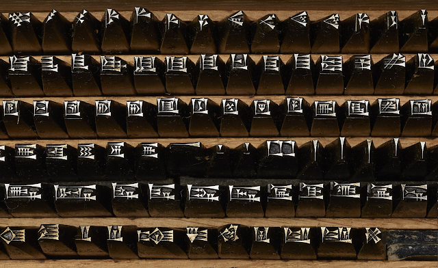 All of these are from the collections of the French Imprimerie nationale, that keep matrices and punches in 65 different writing systems and 150 styles, including the exclusive fonts used by the French governing systems since the mid 17th century. Some of those might surprise you: