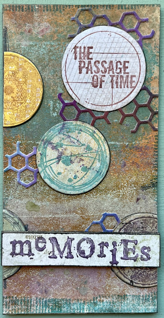 Set ESA45 includes three circle stamps but a fourth stamp that is a trio of small circles. I love the symbolism of circles but they also serve to guide the eye across an artwork - as can be seen in The Passage of Time.