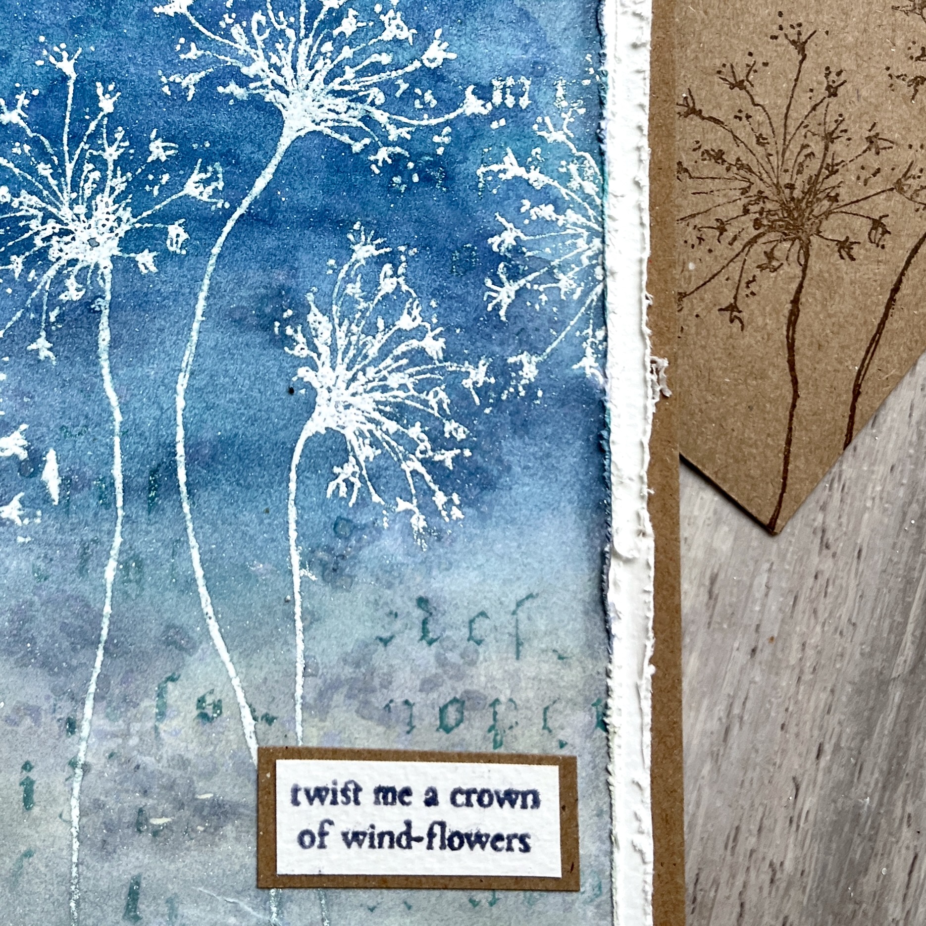 I couldn't resist having a play with some Wow Bright White embossing powder to bring a touch of frost to the umbel stems. I was out and about one frosty December morning, and I can still see in my mind (as well as in the literally hundreds of photos I took!) the glory of fields full of gnarled, twisted umbellifers and meadow grass stalks converted by a spiky hoar frost into magical, intricate sculptures.